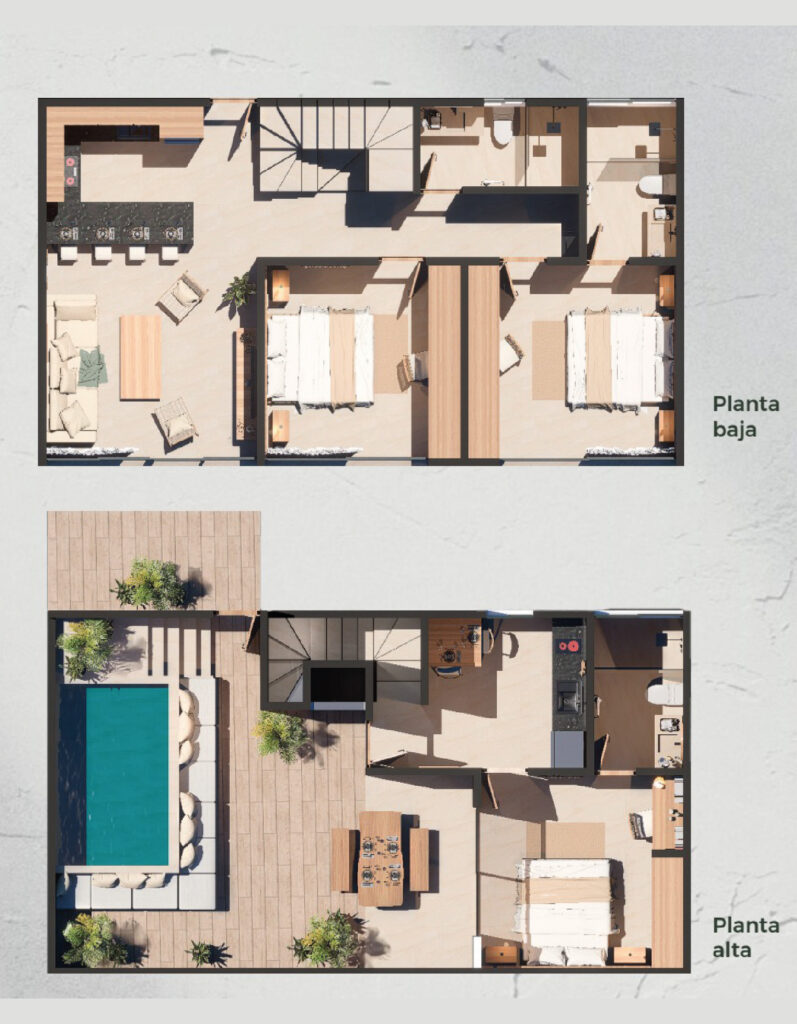 Descubre la variedad de unidades diseñadas para cada necesidad, desde cómodos departamentos de 1 recámara hasta exclusivos penthouses con plunge pool y rooftop. Cada tipología ofrece la perfecta combinación de confort, funcionalidad y armonía con el entorno natural de Tulum.